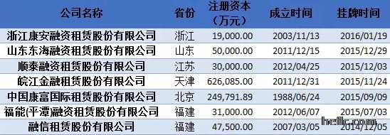 已在新三板掛牌融資租賃公司一覽: