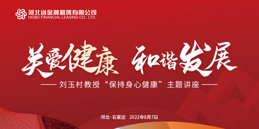 為進一步提升員工健康素養,保障員工身心健康,8月7日,河北省金融租賃有限公司(以下簡稱“河北金租”)舉辦身心健康專題講座,邀請原北京大學黨委常務副書記、醫學部黨委書記劉玉村教授為公司干部員工現場講課。