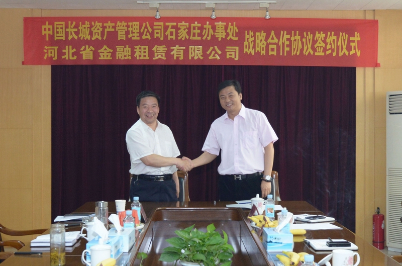 2013年5月31日,為推動各領(lǐng)域業(yè)務(wù)合作,促進(jìn)雙方共同發(fā)展,中國長城資產(chǎn)管理公司石家莊辦事處總經(jīng)理齊銀庚一行與公司總裁徐敏俊及各位領(lǐng)導(dǎo)進(jìn)行了戰(zhàn)略合作洽談會。在會上,雙方領(lǐng)導(dǎo)本著平等互利、優(yōu)勢互補(bǔ)、資源共享的原則友好協(xié)商,決定建立全面業(yè)務(wù)合作關(guān)系。并就風(fēng)險控制、客戶拓展、資產(chǎn)業(yè)務(wù)等方面進(jìn)行了廣泛的交流,對彼此未來的合作前景和方向深入地交換了意見。雙方將依托各自的行業(yè)特點和業(yè)務(wù)范圍,在資產(chǎn)管理、信托業(yè)務(wù)、金融租賃、融資業(yè)務(wù)等方面進(jìn)行全面合作。努力實現(xiàn)優(yōu)勢互補(bǔ)、大力促進(jìn)協(xié)同發(fā)展。當(dāng)天雙方正式簽署了《戰(zhàn)略合作協(xié)議》,確立了合作關(guān)系。