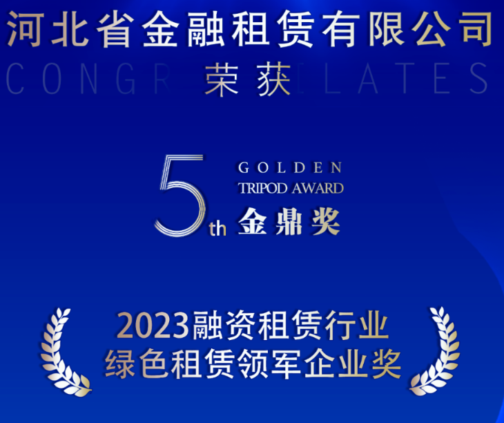 日前,2023中國融資租賃總經理論壇暨“金鼎獎”頒獎盛典在京舉行,300多位金融租賃、融資租賃機構齊聚一堂見證獎項揭曉。河北省金融租賃有限公司(以下簡稱“河北金租”)榮獲2023年度融資租賃行業綠色租賃領軍企業獎項。去年以來,河北金…