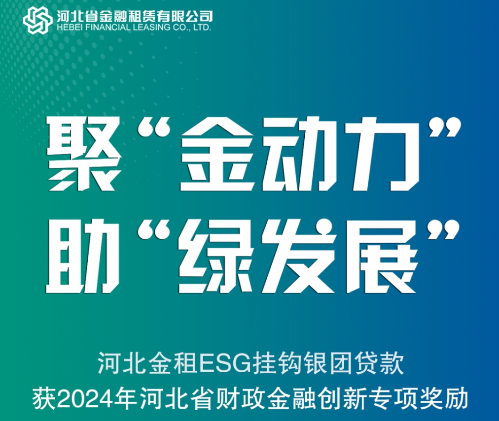 河北省財政2024年“合力支持企業發展專項資金項目”評選結果日前公示,河北省金融租賃有限公司(以下簡稱“河北金租”或“公司”)ESG掛鉤銀團貸款項目在評選中脫穎而出,獲得金融創新類專項獎勵。公司履行企業社會責任,探索綠色租賃業務…